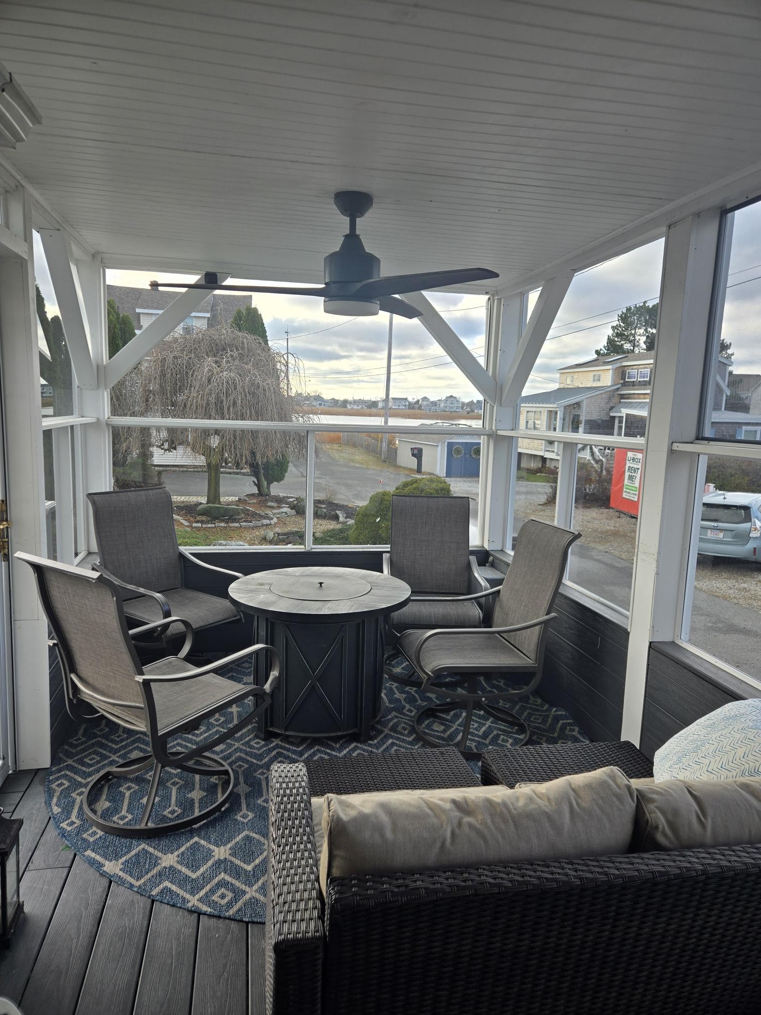 Lovely Plum Island home with upper floor, fully updated, 2 bedrooms, 1 bath with new kitchen, screened porch and upper decks with beautiful Basin views.